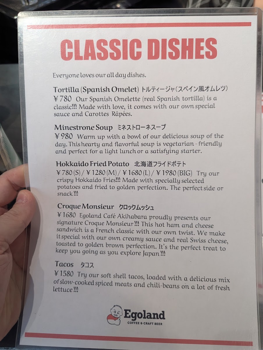 Welcome to Egoland Cafe Akihabara, a hidden gem nestled in the vibrant heart of Akihabara, Tokyo. This cozy locale is more than just a cafe; it's a heartwarming hub for coffee enthusiasts and dessert lovers alike. The menu is a delightful blend of specialty coffees and enticing desserts.