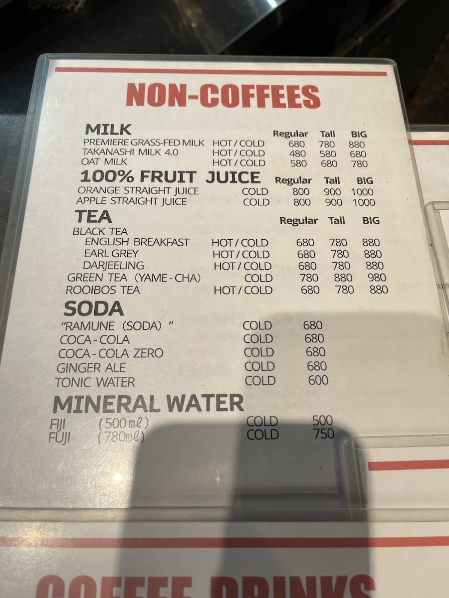 - Espresso: Perfectly crafted options include Cafe Latte at JP¥680 and the robust Americano starting from JP¥580.